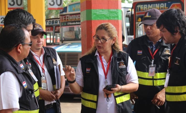 Judith Ferreira, jefa de control y servicios de la DINATRAN insta a los pasajeros que viajaran al interior del país, que primero se acerquen al puesto de control que se encuentra en la explanada de la Terminal de Ómnibus a fin de evitar malos ratos.
