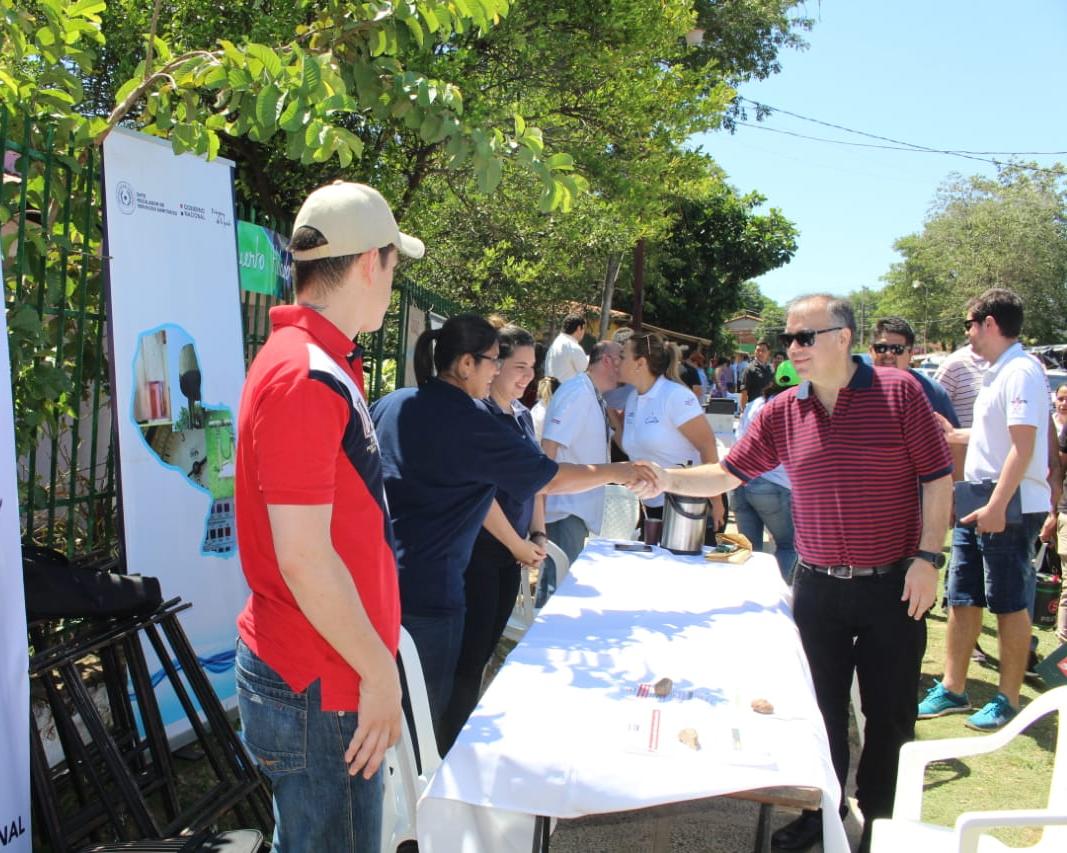 Con el objetivo de escuchar reclamos y consultas sobre los servicios brindados, funcionarios de la Administración Nacional de Electricidad (ANDE), realizan atención a usuarios en el barrio San Francisco de Viñas Cué.