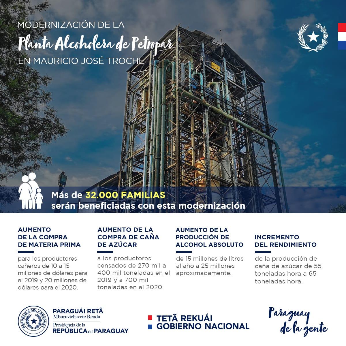 El proyecto de modernización de la planta alcoholera de Petropar, ubicada en Mauricio José Troche, redundará en beneficio en la calidad de vida de la ciudadanía, resaltó la ministra de Industria y Comercio (MIC), Liz Cramer.