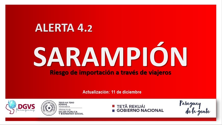 El Ministerio de Salud Pública y Bienestar Social (MSPYBS), emitió la alerta epidemiológica por sarampión ante el alto riesgo de importación del virus debido al brote que se registra actualmente en 12 países del continente americano.