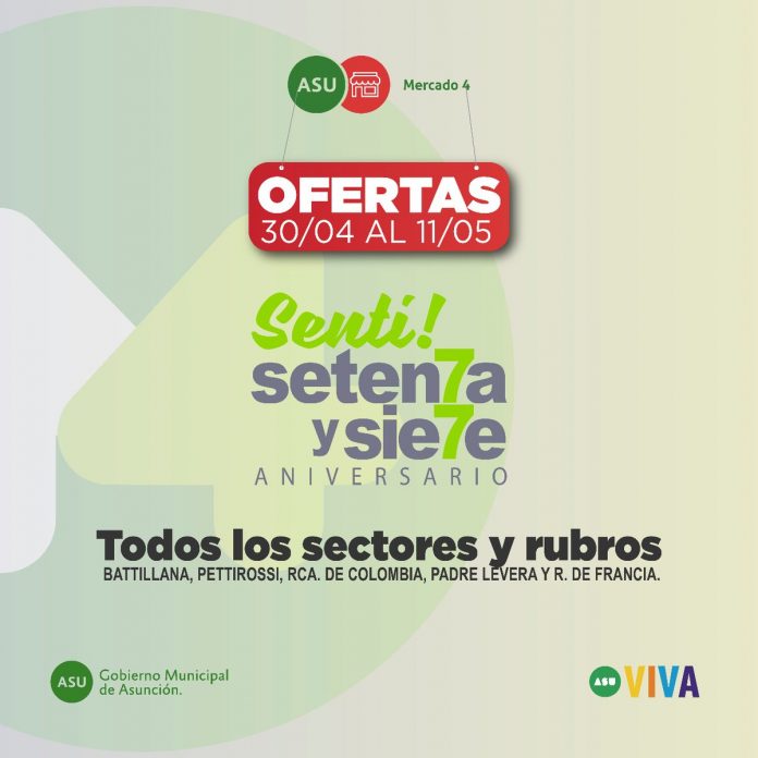 Sin categoría Mercado Municipal Nro 4 conmemora 77 aniversario 07/05/2019 546 El mayor centro comercial de Asunción, el Mercado Municipal Nro 4 conmemora en la fecha, 77 aniversario, por medio de un acto, donde asistieron autoridades nacionales y municipales. https://www.radionacional.gov.py/wp-content/uploads/2019/05/50-MIN.-CARLA-BACIGALUPO.mp3