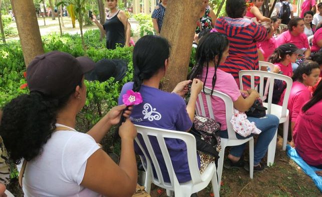 Sentadas en corro bajo los árboles de la plaza, mujeres de todas las edades soltaron sus cabellos y se fueron intercambiando peines, coleteros, horquillas y flores para adornar las trenzas, coincidiendo con la conmemoración del Día Internacional para la Eliminación de la Violencia contra la Mujer.