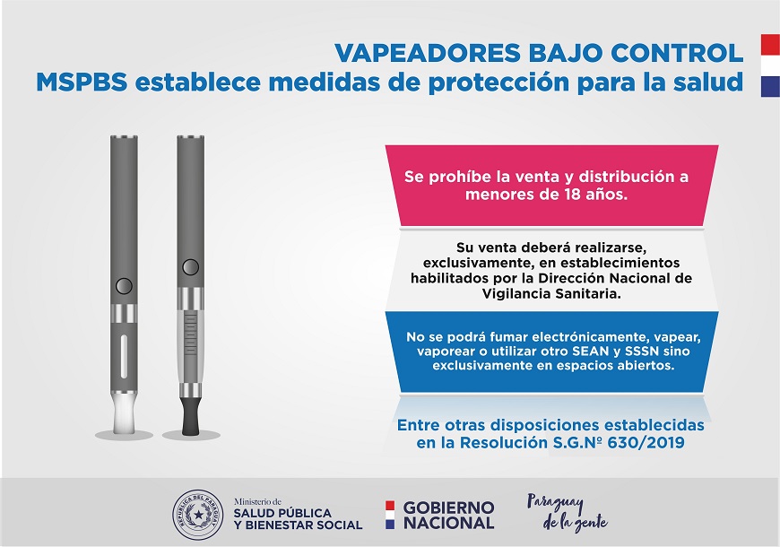 • La venta de cigarrillos electrónicos, vapeador, vaporeador y cualquier otro SEAN/SSSN y sustancias utilizadas con los mismos deberá realizarse, exclusivamente, en lugares y puntos de venta de los establecimientos habilitados por la DNVS.