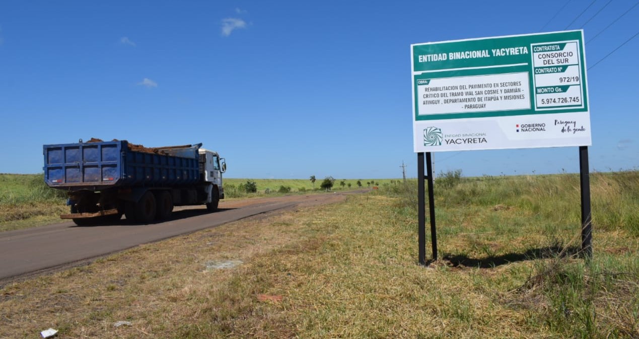 La Entidad Binacional Yacyretá (EBY), a través del Contrato N° 972/19 inició los trabajos de rehabilitación del pavimento en sectores críticos del tramo vial San Cosme y San Damián-Atinguy, entre los departamentos de Itapúa y Misiones.