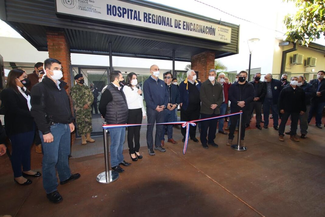El presidente de la República, Mario Abdo Benítez, inauguró nuevas obras de infraestructuras en el Hospital Regional de Encarnación este jueves, durante una jornada en el departamento de Itapúa. Las obras fueron financiadas por el Gobierno Nacional a través de la Entidad Binacional Yacyretá e incluyen el bloque nuevo de consultorios y servicios para fortalecer la atención en el centro asistencial. Como parte de la inversión, se destaca la instalación del sistema de agua potable para el establecimiento sanitario.