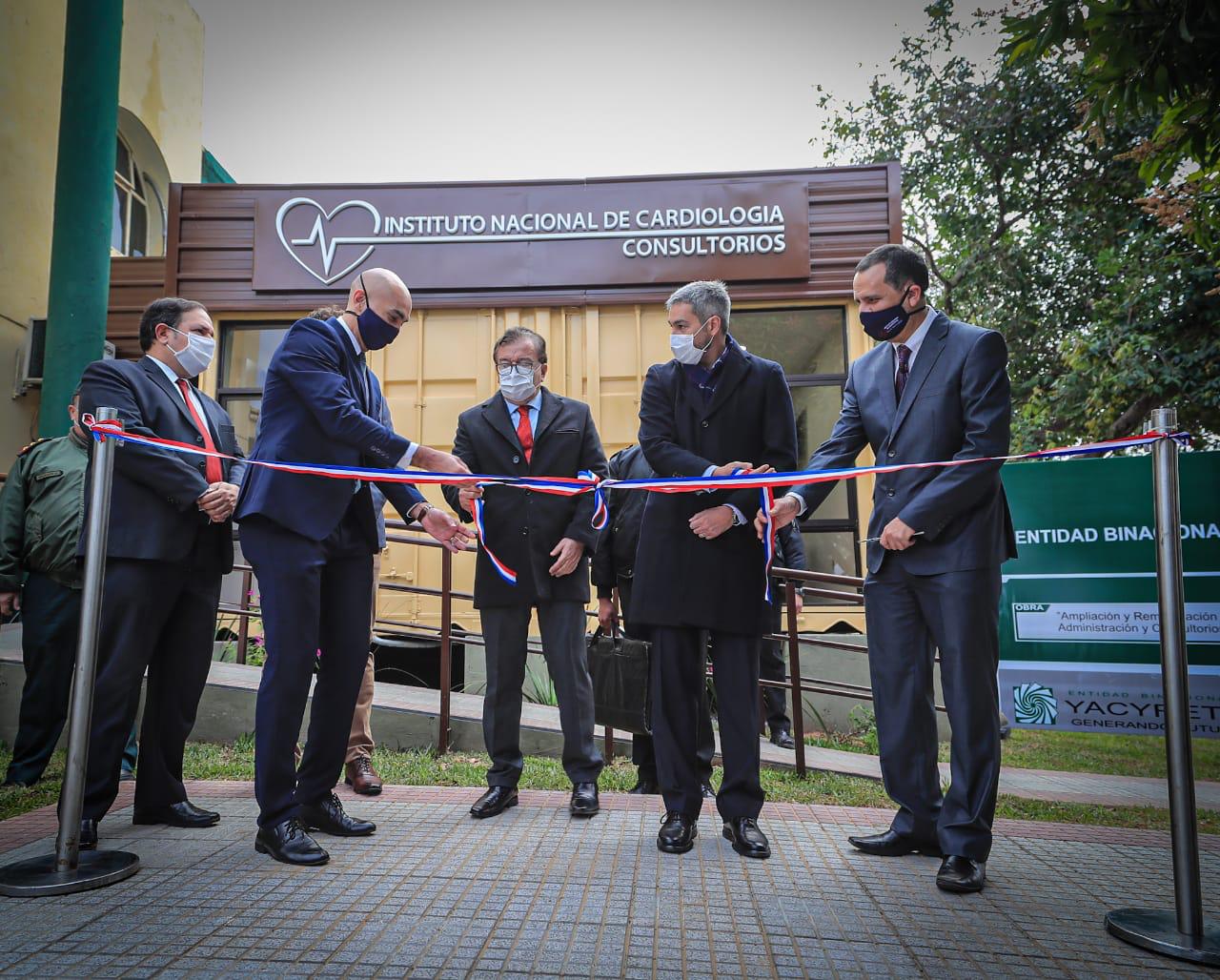 Con presencia del presidente de la República, Mario Abdo Benítez, fueron habilitadas las mejoras en el Instituto Nacional de Cardiología “Prof. Dr. Juan Adolfo Cattoni”, del Hospital San Jorge, que fueron encaradas con apoyo de la Entidad Binacional Yacyretá (EBY). Se trata de dos alas nuevas que permiten aumentar el número de camas en el único instituto de referencia en patologías del corazón, dentro del Ministerio de Salud Pública.