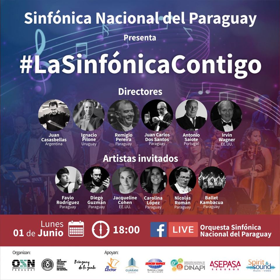 Este y otros proyectos son concretados por la Sinfónica Nacional gracias al apoyo de: La Secretaría Nacional de Cultura, Hotel Guaraní Asunción, Dirección Nacional de Propiedad Intelectual (DINAPI), El lector, Asunción Vanpack, ASEPASA Seguros, y Spirit & Sound.