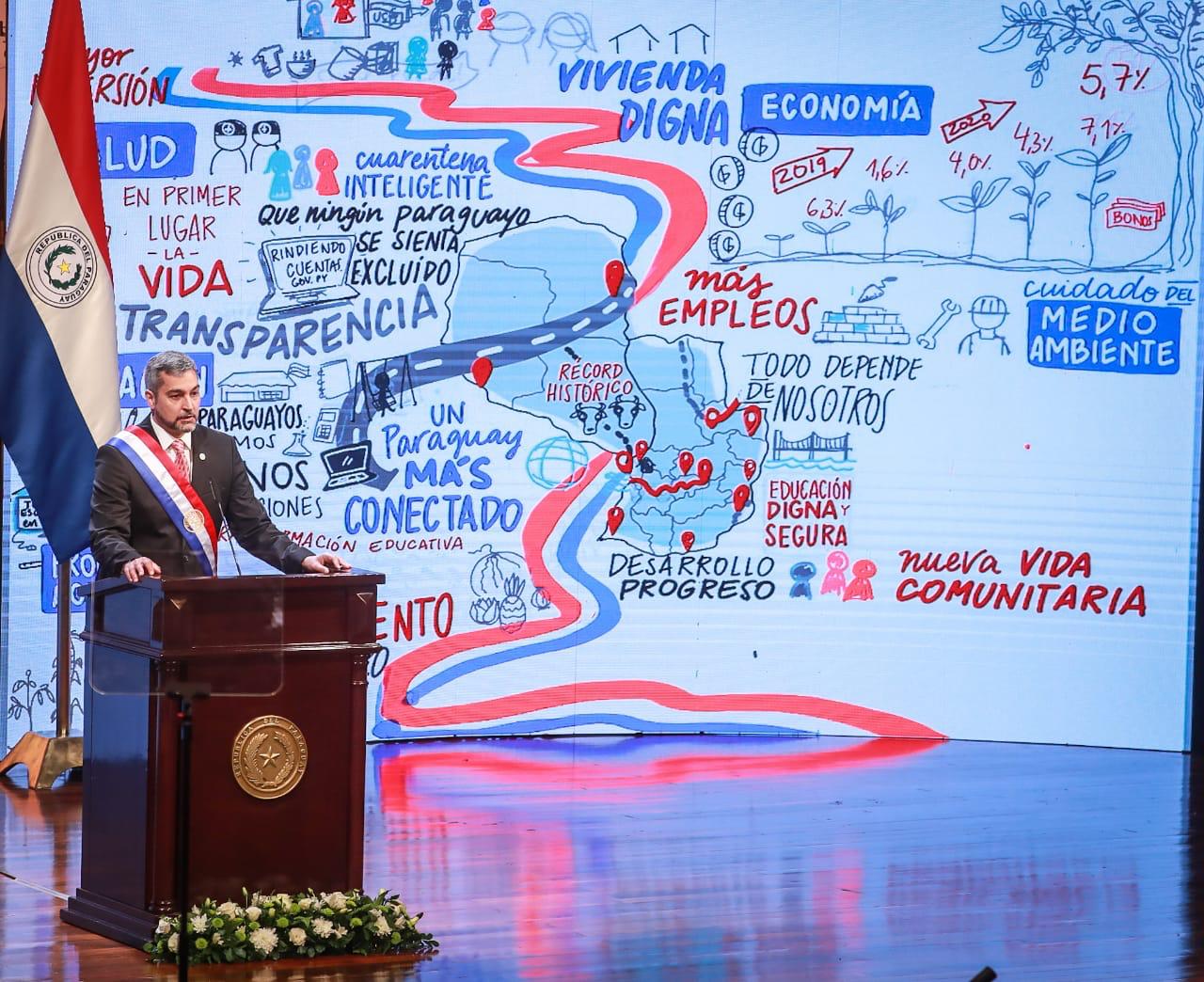 El presidente de la República, Mario Abdo Benítez, presentó este miércoles el informe de Gestión al Congreso Nacional.