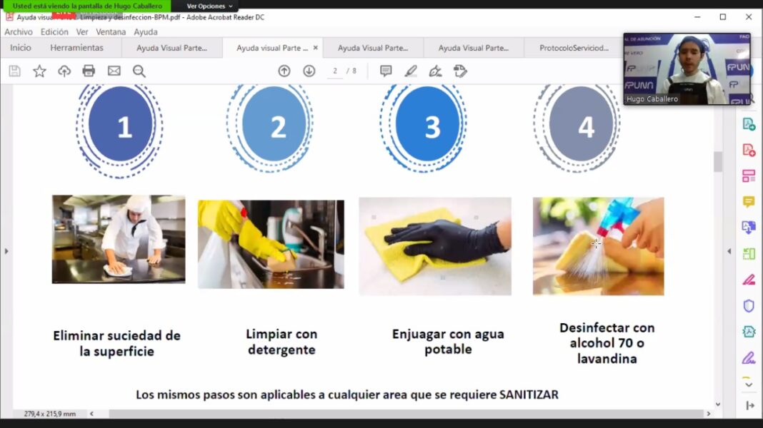 El manual que reúne a las buenas prácticas en la manipulación de alimentos ante el Covid-19 fue presentado hoy a propietarios de posadas turísticas, establecimientos rurales y miembros de la Asociación Paraguaya de Turismo Rural (APATUR), en un encuentro virtual organizado por la Senatur, en forma conjunta con la Facultad Politécnica UNA.