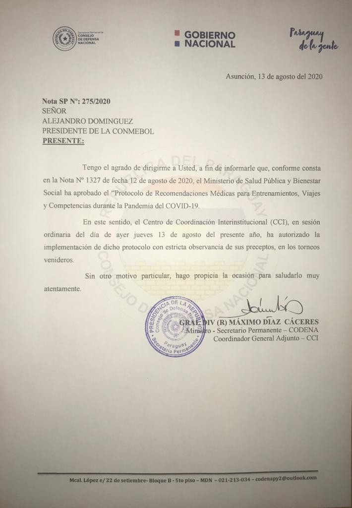 Paraguay es el primer país en aprobar, los protocolos sanitarios establecidos por la CONMEBOL, resaltó a través de un comunicado de prensa, la máxima entidad del fútbol sudamericano.