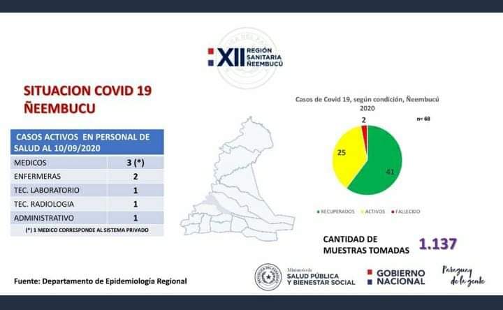 Menciona en el informe, que en la actualidad, existen unos 25 casos activos de coronavirus en el departamento de Ñeembucú.