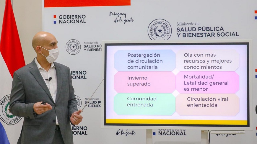 En cuanto a los datos epidemiológicos señaló que Paraguay se encuentra con números favorables en comparación a otros países. La tasa de mortalidad ubica a nuestro país en el décimo tercer lugar. “También hemos registrado en las últimas 4 semanas una estabilización de los casos, un enlentecimiento primero de la aceleración y un descenso, pero lo que buscamos es que esto se sostenga, de ninguna manera esto significa que no tenemos la amenaza del COVID-19”, expresó el ministro.