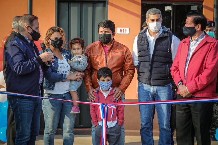 Con presencia del mandatario Mario Abdo Benítez fueron inauguradas 58 viviendas construidas a través del MUVH, para familias de la Compañía Pintos, del Distrito de Acahay.
