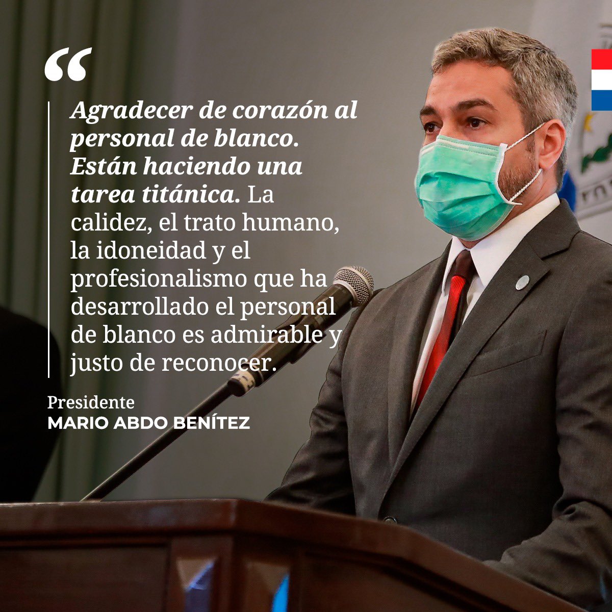 El presidente de la República, Mario Abdo Benítez, agradeció este martes en Palacio de Gobierno al personal de blanco, que presta servicios a la salud de la población.
