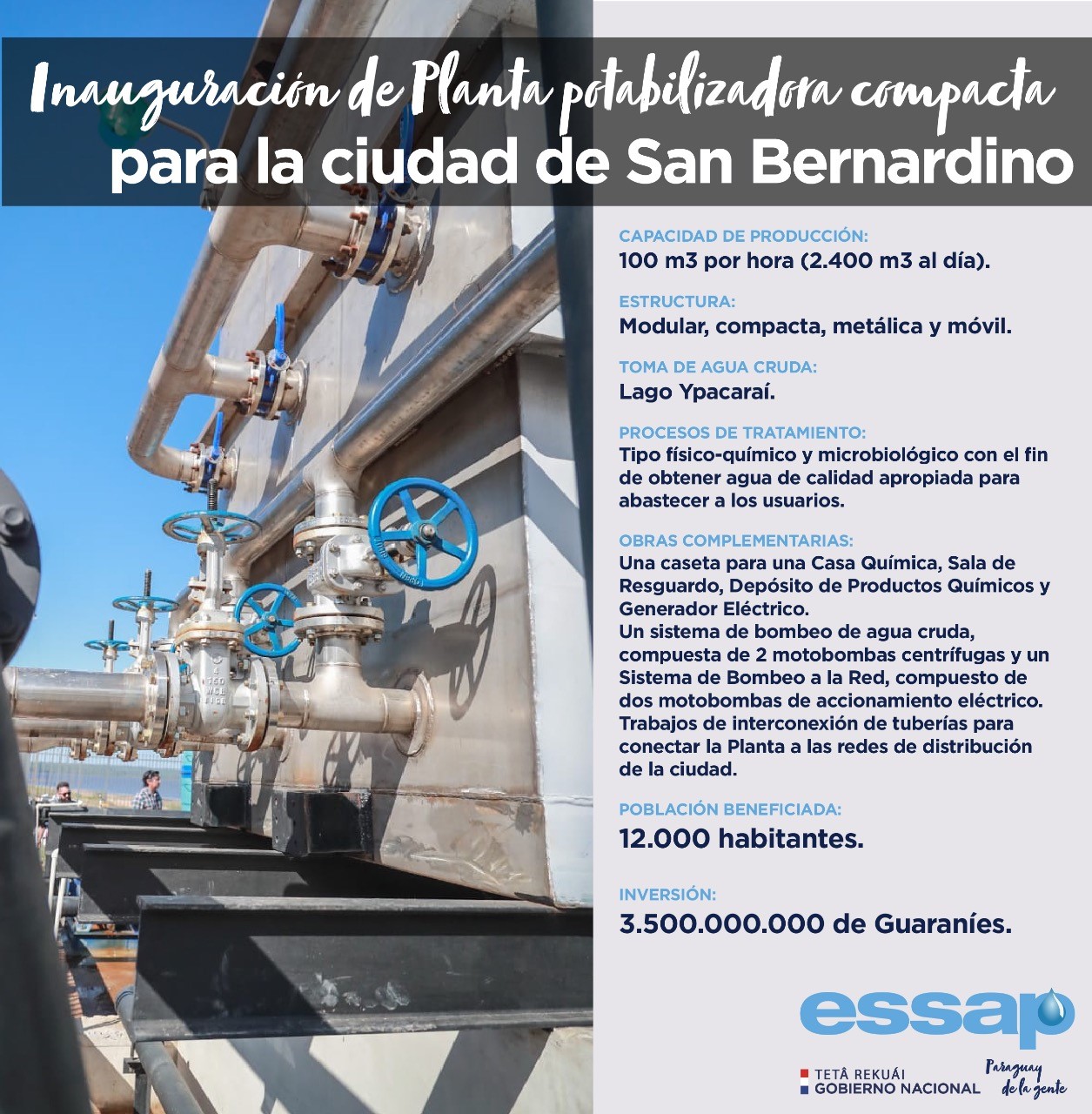 La ESSAP, resaltan las obras complementarias, tales como la instalación de una Caseta Tipo Conteiner sobre ruedas para una Casa Química, Sala de Resguardo, Depósito de Productos Químicos, y Generador Eléctrico; Un sistema de bombeo de agua cruda compuesto de 2 motobombas centrifugas y un Sistema de Bombeo a la Red, compuesto de dos motobombas de accionamiento eléctrico.
