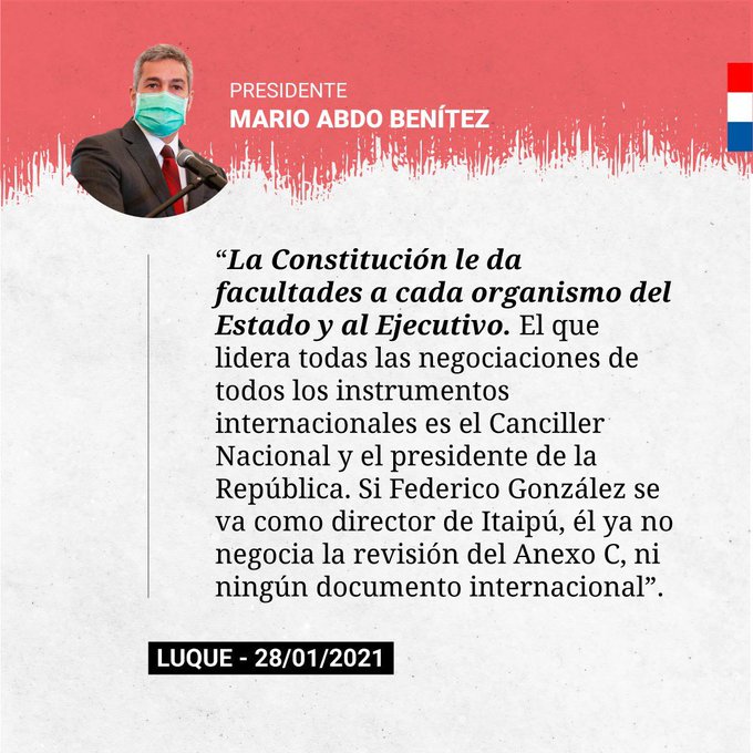 El presidente de la República se refirió a la designación del embajador Federico González al frente de la Itaipú Binacional y aclaró los alcances de su participación en la revisión del Anexo C del Tratado.