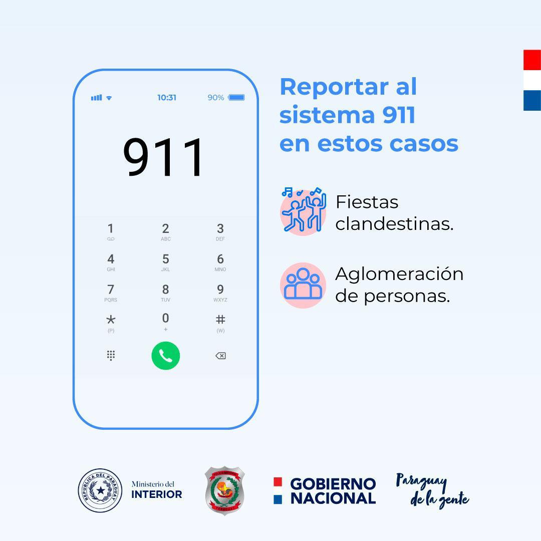Con la finalidad de evitar las fiestas clandestinas y las aglomeraciones de personas, el Ministerio del Interior y la Policía Nacional, exhortan a la ciudadanía en general a denunciar a través del sistema 911.