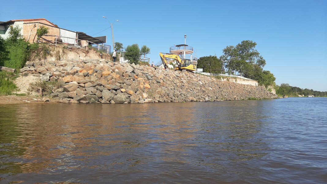 Los trabajos para la construcción de esta obra presentan un avance importante, ya que informaron sobre la culminación de la primera parte de este proyecto consistente en la colocación de piedra bruta,  para las bases del muro, donde posteriormente los obreros ya se estarían enfocando para colocar las piedras con malla denominada gaviones, así también la instalación de baranda y ampliación de espacio público, que depende del proyecto presentado al ministerio de Obras Públicas y Comunicaciones.