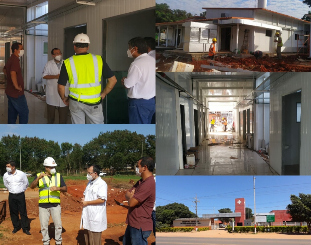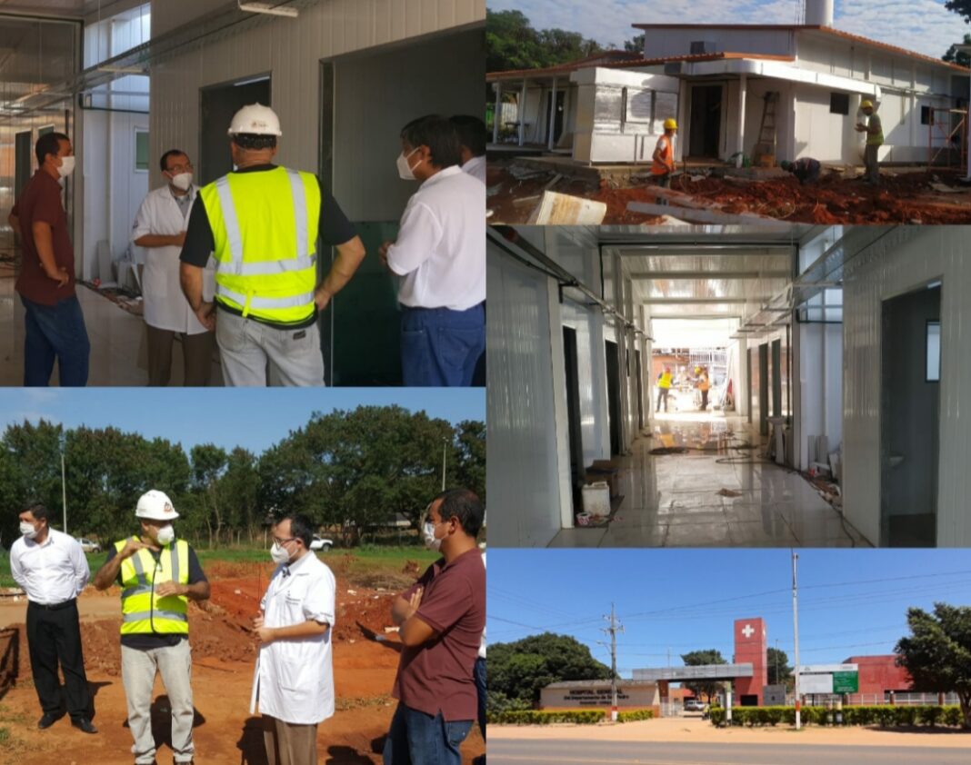 Fiscalizadores de recursos físicos de la cartera sanitaria se encuentran visitando las distintas sedes del Ministerio de Salud Pública, para las tareas de verificación de las construcciones ejecutadas de nuevos pabellones de contingencia para la atención de pacientes con COVID-19. Una de las obras verificadas en el norte del país fue en la ciudad  de  Santa Rosa del Aguaray,  donde la construcción edilicia presenta un avance del  70 por cientos en el Hospital General de San Pedro,  que albergará  unas 16 camas para reforzar la capacidad de respuestas a los afectados por el virus, según informó a nuestro medio, el Dr. Alejandro Valenzuela, director de la institución médica.