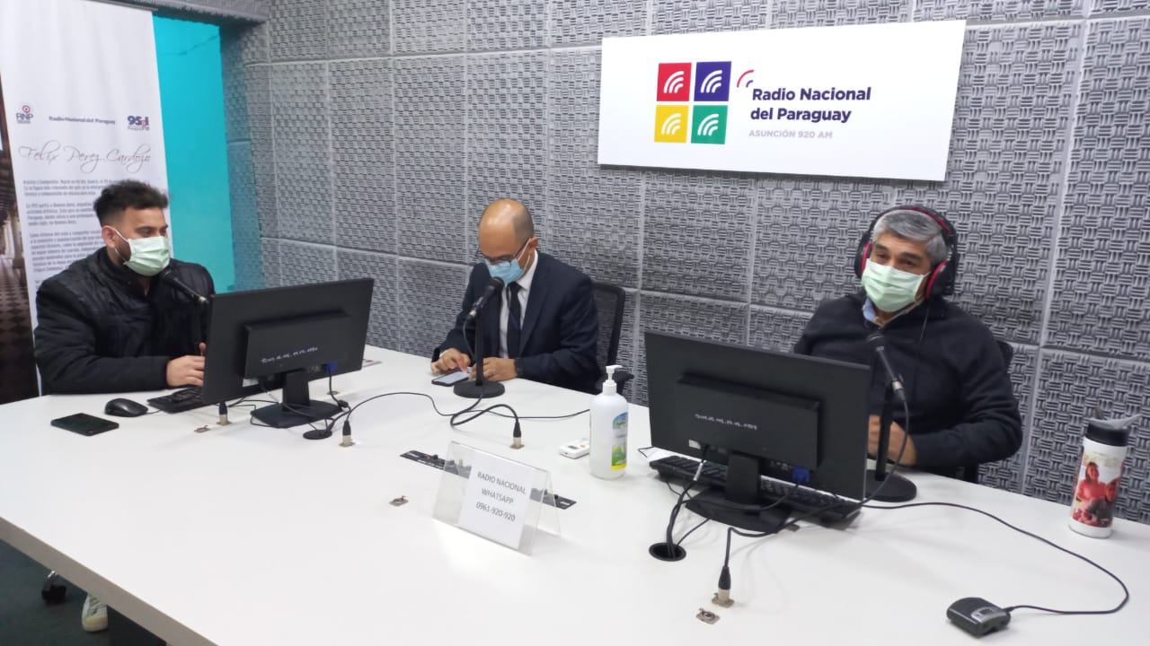 El director del Programa Ampliado de Inmunizaciones, Dr. Héctor Castro en los estudios de Radio Nacional que aseguró que el Ministerio de Salud Pública y Bienestar Social (MSPBS), priorizará las segundas dosis de las vacunas contra Covid-19 y con la llegada de más biológicos, podrán incluir a rezagados y personas de distintas franjas de edad.