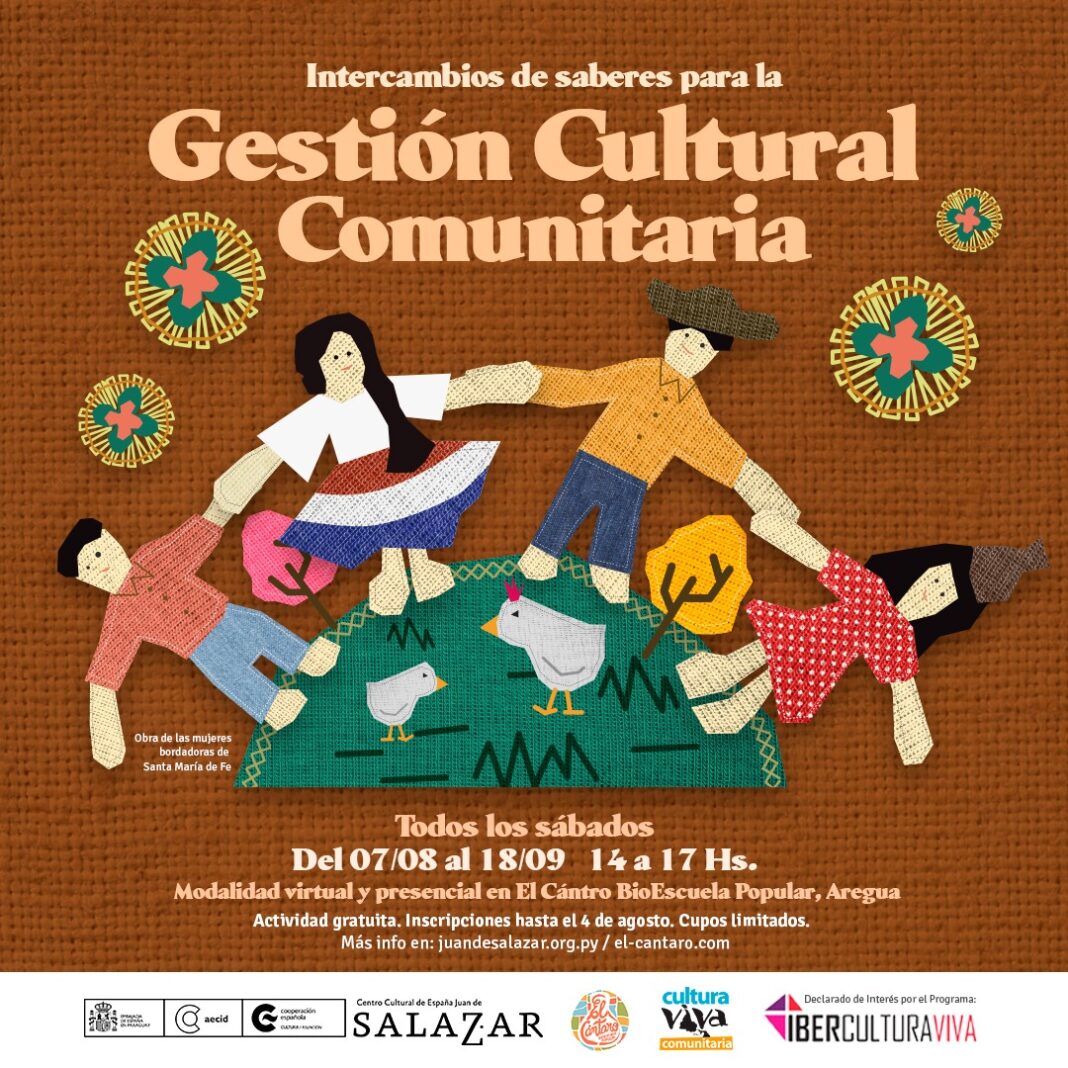 Este sábado 7 de agosto, comenzará el taller semipresencial «Intercambios de saberes para la gestión cultural comunitaria», que impulsan el Cántaro BioEscuela Popular y el Centro Cultural de España Juan de Salazar y que tiene como objetivo adentrarse en los conceptos, filosofías y herramientas para la gestión cultural comunitaria, además de conocer experiencias locales e internacionales, promoviendo el intercambio entre los participantes.