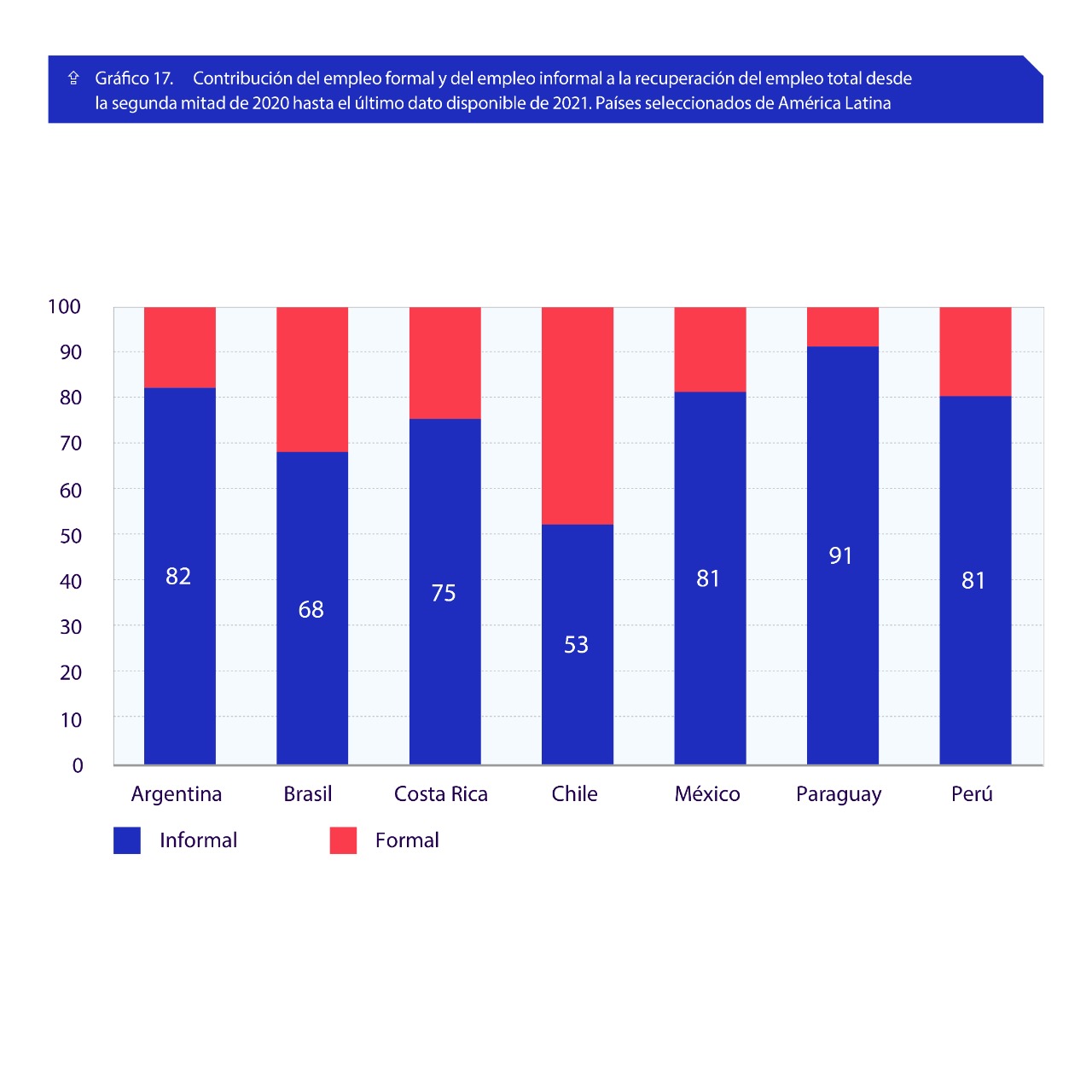 Comentó que en el informe, el empleo informal tuvo un mayor impacto durante el segundo trimestre del 2020 y los trabajadores informales son quienes se recuperan con la reactivación del empleo con las menores medidas restrictivas, que se da en la mayoría de los países de la región. Mientras que el sector formal, fue el menos afectado durante la pandemia y la tasa de recuperación es menor.