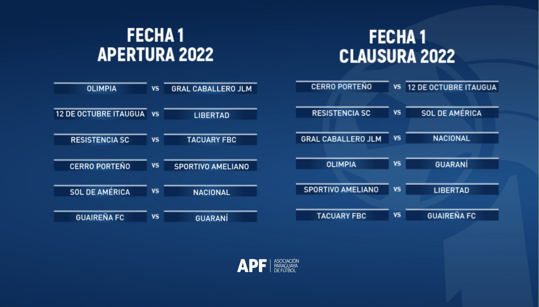 Los detalles en el siguiente link: Fixtures del Apertura y Clausura 2022