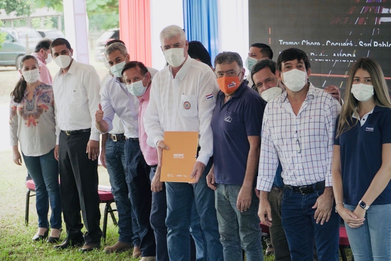 Durante la inauguración del tramo vial en el departamento de San Pedro, que unen las localidades de Cruce Liberación – Choré – San Pablo – Ruta 11, que contó con la presencia del presidente de la República, Mario Abdo Benítez, se procedió a la firma simbólica de contratos entre el Ministerio de Obras Públicas y Comunicaciones (MOPC) y las 3 empresas adjudicadas para la construcción de los Corredores Agroindustriales de la Región Oriental.