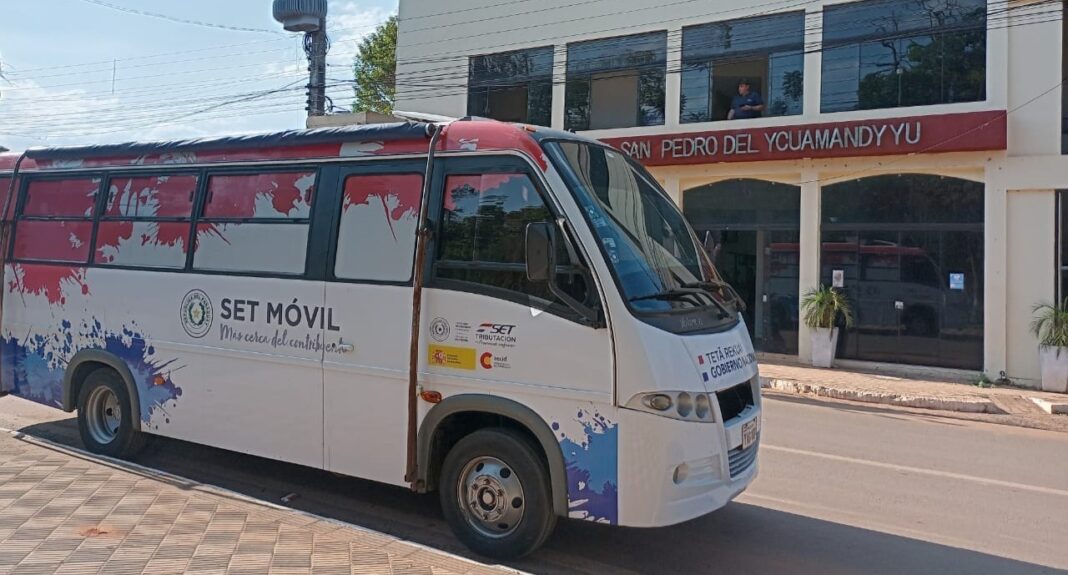 La Plataforma Móvil de Atención al Contribuyente de la Subsecretaría de Estado de Tributación realiza una parada en la fecha en San Pedro de Ycuamandyyú, para el jueves se prevé visitar el distrito de Choré, con el objetivo de seguir ofreciendo servicios gratuitos a los contribuyentes.