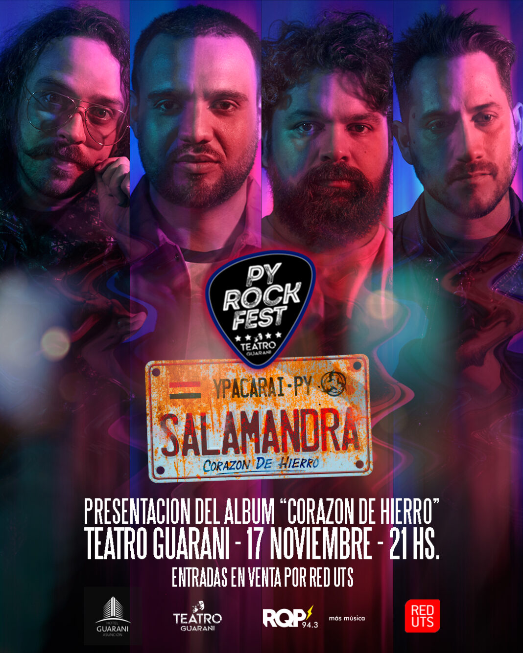 Asunción, Radio Nacional.-La banda paraguaya de rock Salamandra, presentará su nuevo disco Corazón de Hierro, en un único show a realizarse en Asunción, en el Teatro Guaraní, sito en Independencia Nacional y Oliva, hoy jueves 17 de noviembre, a partir de las 20:30 horas. Este evento, se realiza dentro del ciclo de conciertos, denominado “PY Rock Fest”, organizado por el local.