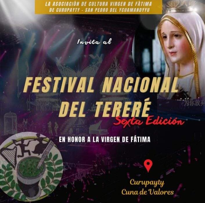 La asociación de Cultura Virgen de Fátima de la compañía Curupayty, distrito de San Pedro de Ycuamandyyú, se encuentra organizando para este sábado 10, la sexta edición del Festival Nacional del Tereré. En la ocasión, se tendrá la presencia de varios artistas y elencos de danzas.