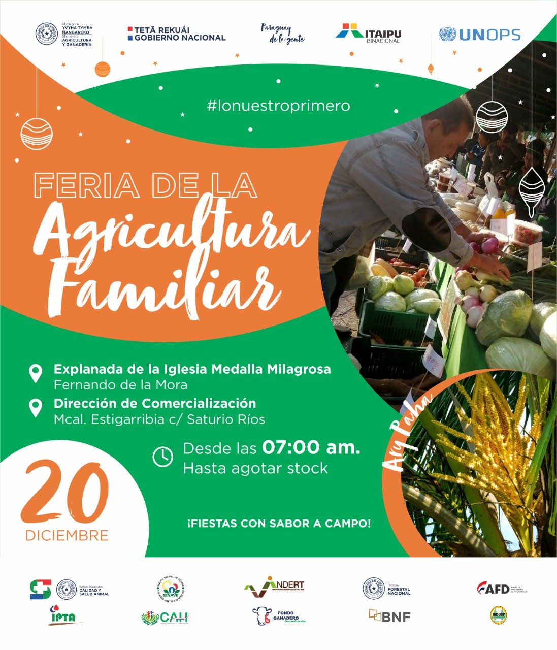 Asunción, Radio Nacional.-El 20, 21 y 22 de diciembre, el Ministerio de Agricultura y Ganadería organiza la Feria de la Agricultura Familiar de manera simultánea en Asunción, San Lorenzo, Fernando de la Mora y Limpio, destacó este lunes el director de Comercialización, Ernesto Sotelo.
