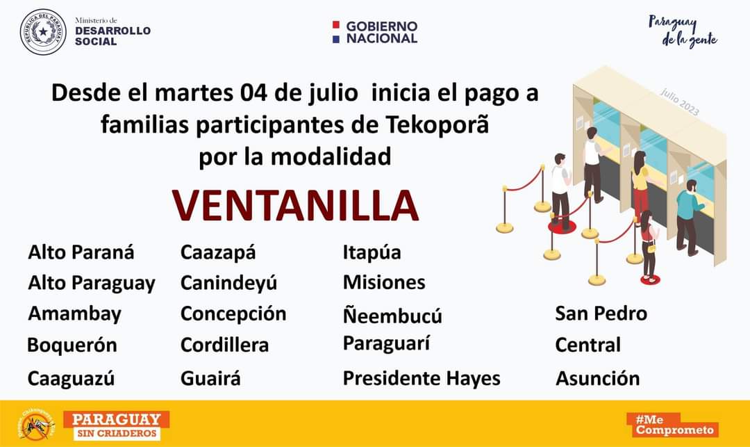 La Ing. Lourdes Romina Asimo, coordinadora departamental de Tekoporã de San Pedro, informó que a partir de este martes 04 de julio, se estarán habilitando las transferencias monetarias en la modalidad de ventanilla para todas aquellas personas beneficiadas con el programa.