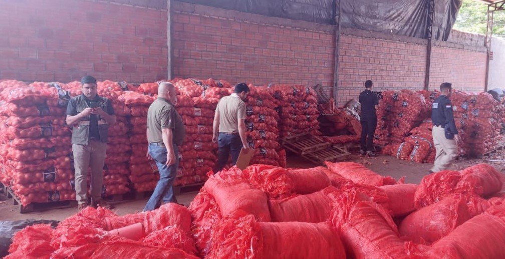 Unos 40 mil kilos de cebolla, que habrían sido ingresadas de forma ilícita al país y sin documentación, fueron decomisados este martes. Se trata de una carga de 2.000 bolsas de 20 kg de cebollas cada bolsa, que se encontraban en un depósito en Villa Elisa, departamento central.