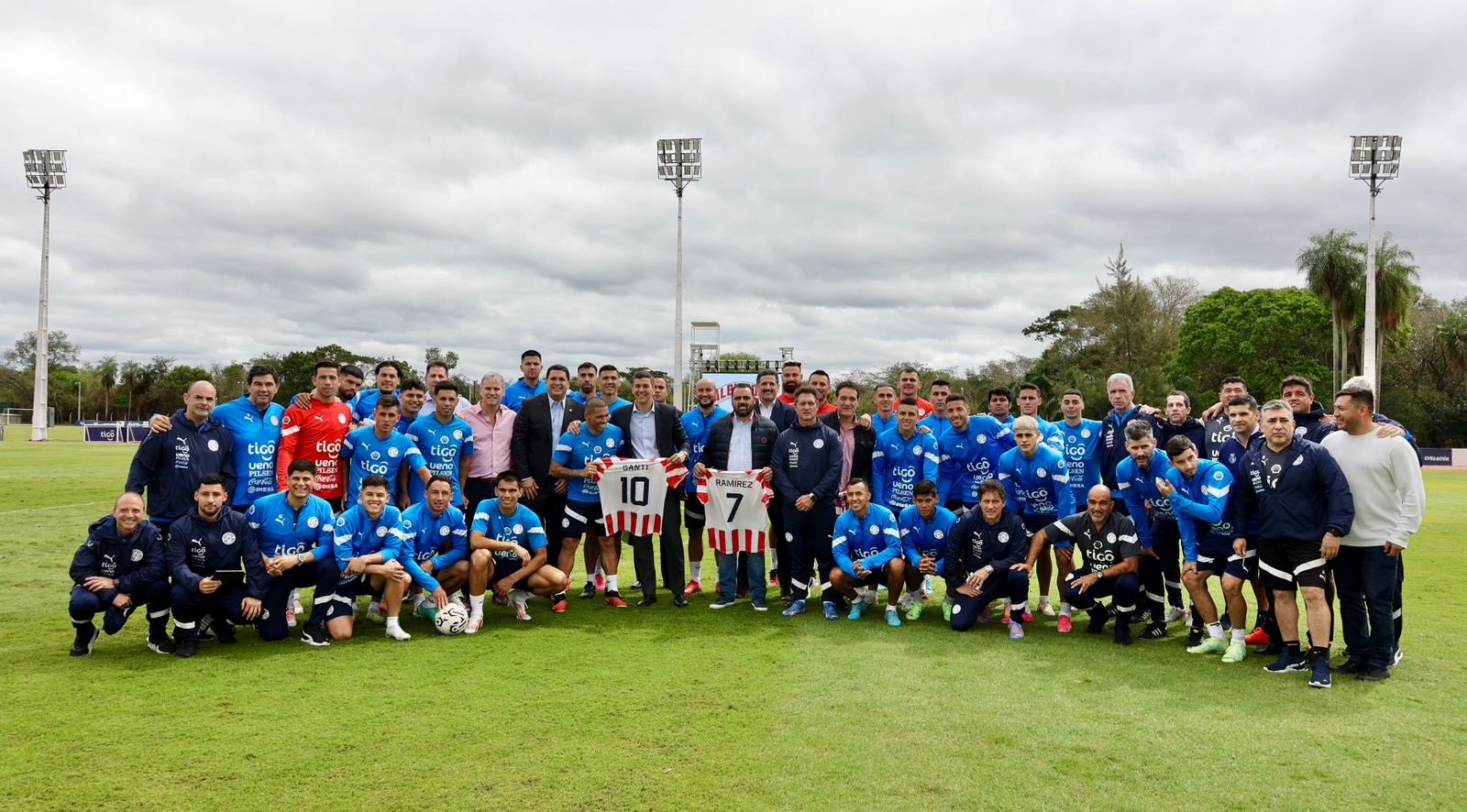 Luego del entrenamiento de la plantilla de la Albirroja, el presidente de la República Santiago Peña, llegó hasta el CARDE en Ypané para saludos a los jugadores y desear el éxito en el primer juego frente a Perú, con miras al clasificatorio al Mundial FIFA 2026.
