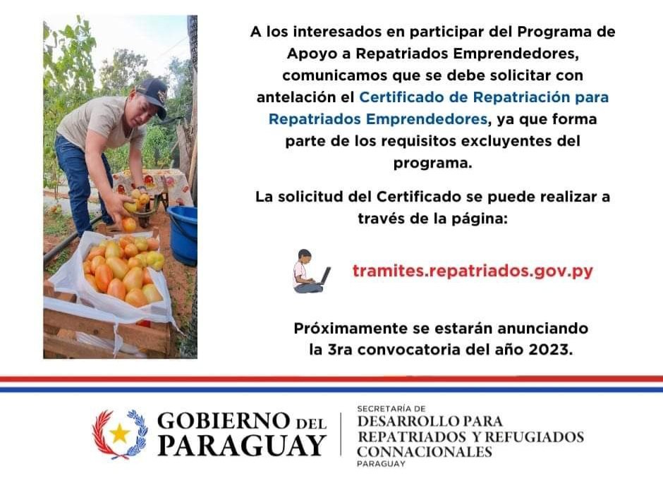 En los próximos días se prevé realizar la habilitación de inscripciones correspondiente a la convocatoria para los connacionales interesados que desean beneficiarse con el Programa de Apoyo para Repatriados Emprendedores. La apertura de inscripción se realizará por vía online.