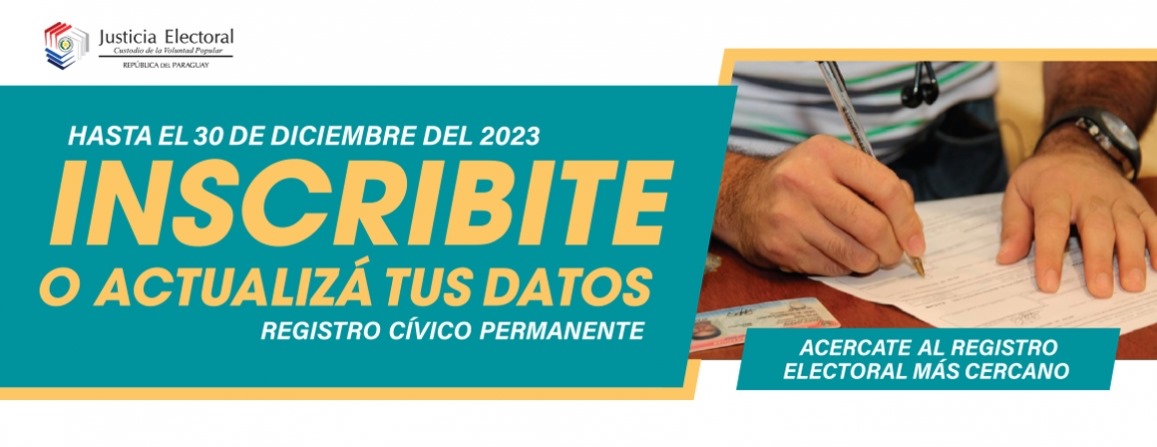 El Tribunal Superior de Justicia Electoral, recuerda que hoy 30 de diciembre finaliza el período de inscripción en el Registro Cívico Permanente (RCP). Menciona que todos los ciudadanos que deseen formar parte de este registro, ya sea para inscribirse por primera vez o para actualizar sus datos, tienen hasta las 23:59 horas para hacerlo.