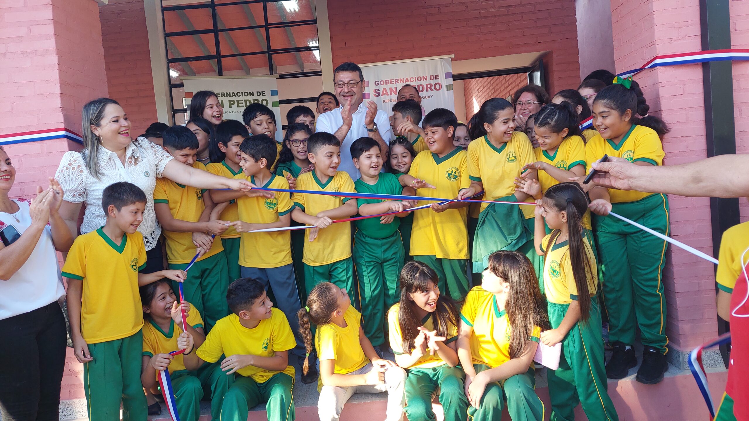 Durante un emotivo acto realizado de las actividades escolares, las autoridades departamentales aprovecharon para realizar en la ciudad de San Pedro de Ycuamandyyú la entrega de 100 mobiliarios y la inauguración de un aula que beneficia al Centro Educativo San Pedro Apóstol.