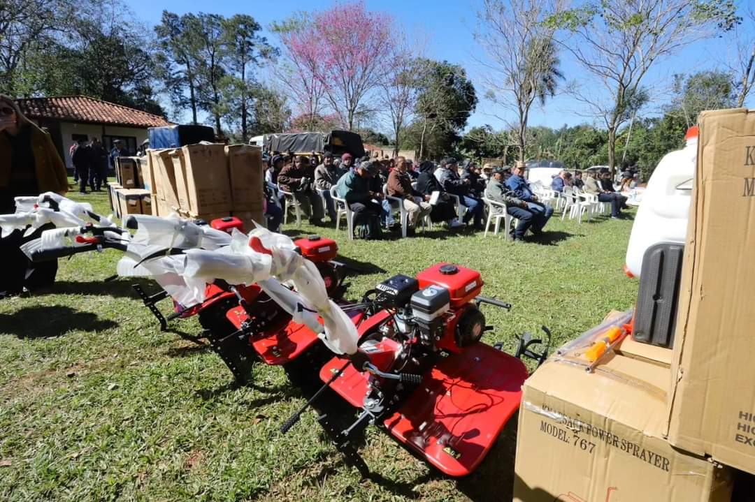 Los implementos entregados son; 115 pulverizadores, tanque de 20 litros, 330 bolsas de fertilizantes órgano mineral granulado de 50 kilos, 50 unidades de pulverizadores motorizados y 3 motocultores que totalizan un monto de inversión de G. 450 millones para 165 productores.