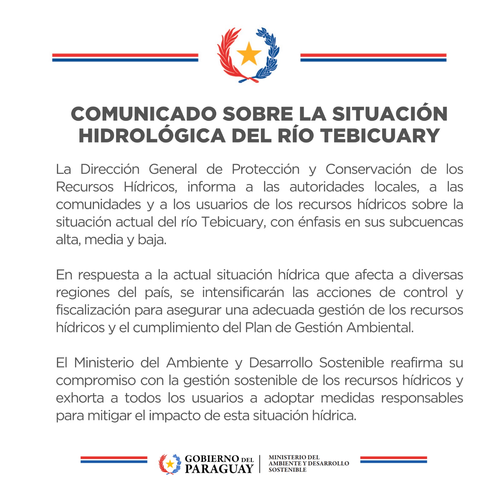Establecen situación de alerta al déficit hídrico en las cuencas del Tebicuary