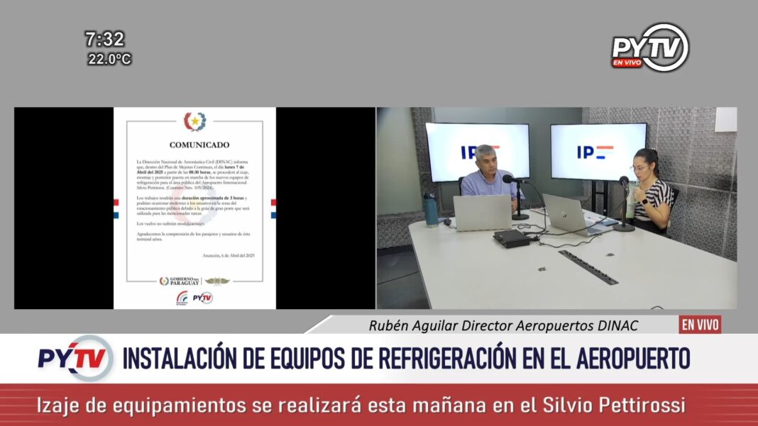El izaje de equipos de refrigeración, se desarrolló en la mañana de este lunes, en el aeropuerto Silvio Pettirossi, informó el director de Aeropuertos de la Dinac, Rubén Aguilar.