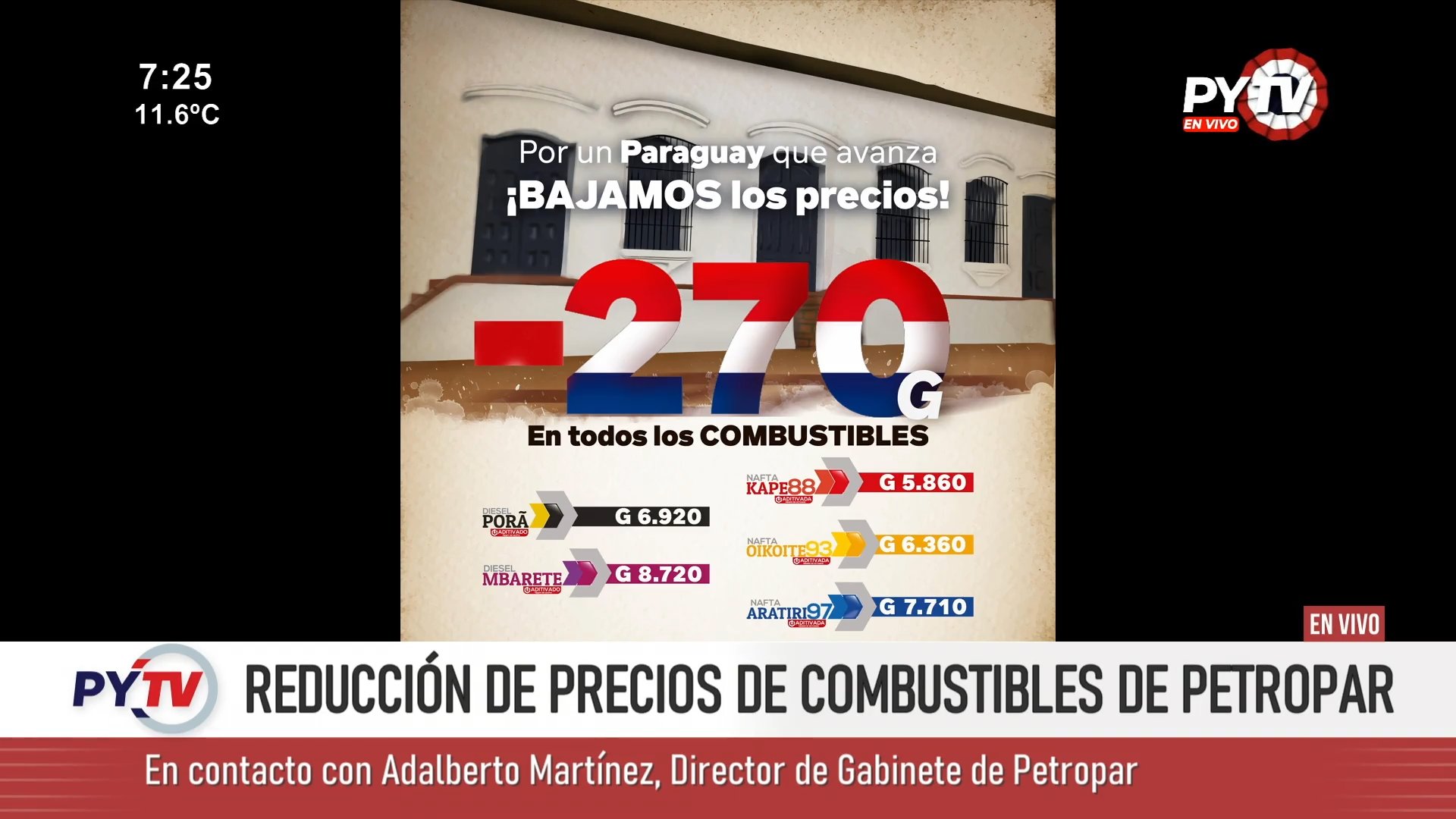 Esta reducción está vigente para naftas y diésel, afirmó este lunes el director de Gabinete de Petropar, Adalberto Acuña.