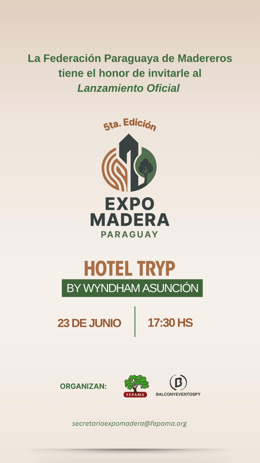 La Federación Paraguaya de Madereros invita al Lanzamiento Oficial de la 5ta Edición de Expo Madera Paraguay, destacó este viernes el presidente de Fepama, Manuel Jiménez Gaona.