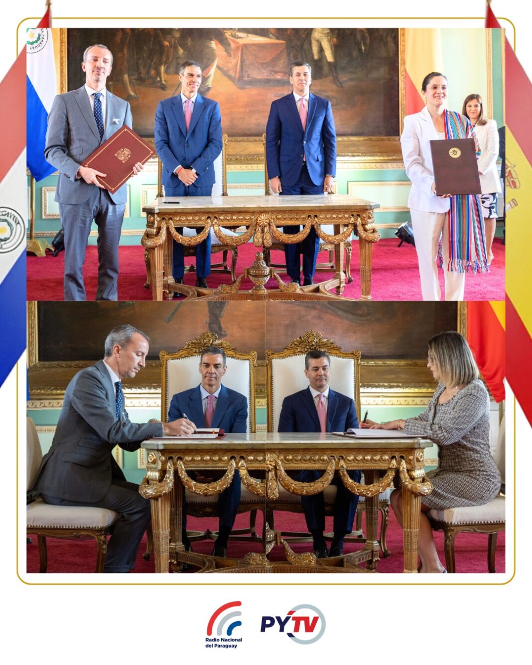 En el encuentro bilateral, el presidente Santiago Peña junto con su par, Pedro Sánchez, firmaron acuerdos de cooperación en el ámbito laboral y cultural.