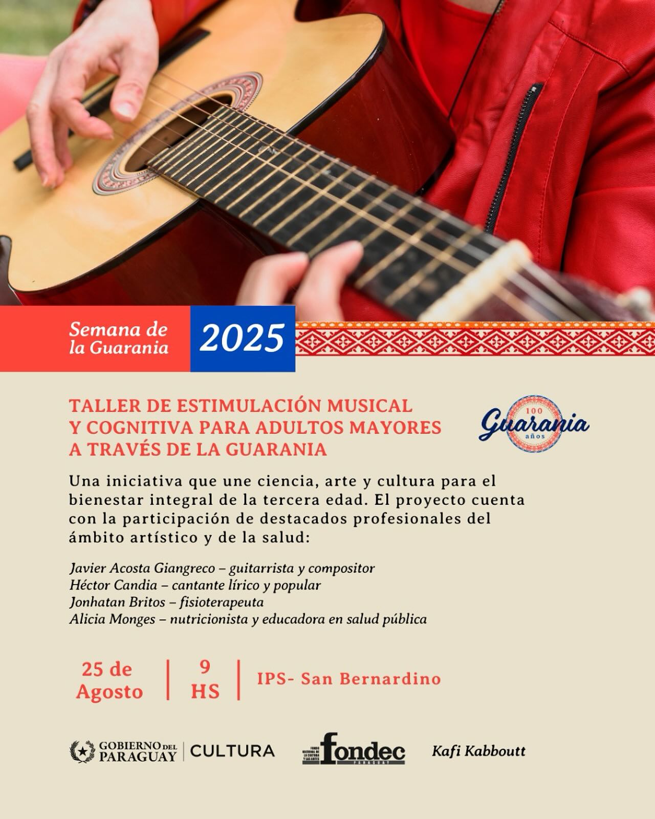 A fin de celebrar el centenario de la Guarania, en el local del Instituto de Previsión Social, en San Bernardino se realiza un taller musical.