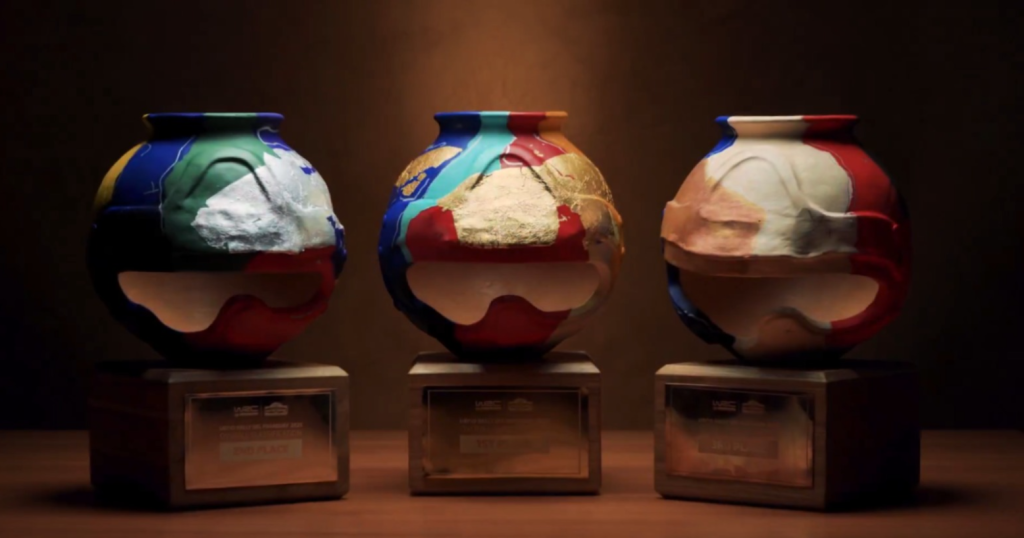 Los campeones del Rally Mundial del Paraguay 2025 llevarán en sus manos un trofeo peculiar, el Kambuchi rojo tradicional del Paraguay, con un toque artístico contemporáneo, que busca representar a la peculiar tierra roja del país donde se desarrolla la competencia automovilística.