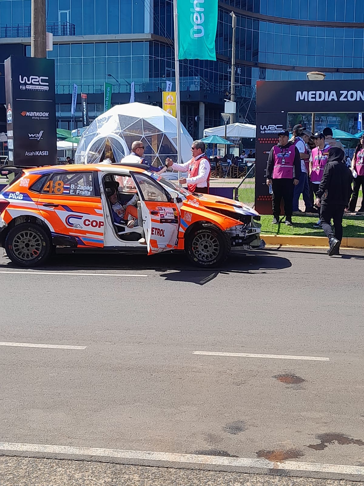 Por su parte Fabrizio Zaldívar, refirió que se encuentran terceros, pero que perdieron un valioso tiempo en el momento de solucionar un desperfecto que tuvieron durante este primer tramo. También mencionó que el público se comporta adecuadamente y expresó que tienen las expectativas de mejorar su posición en la carrera.