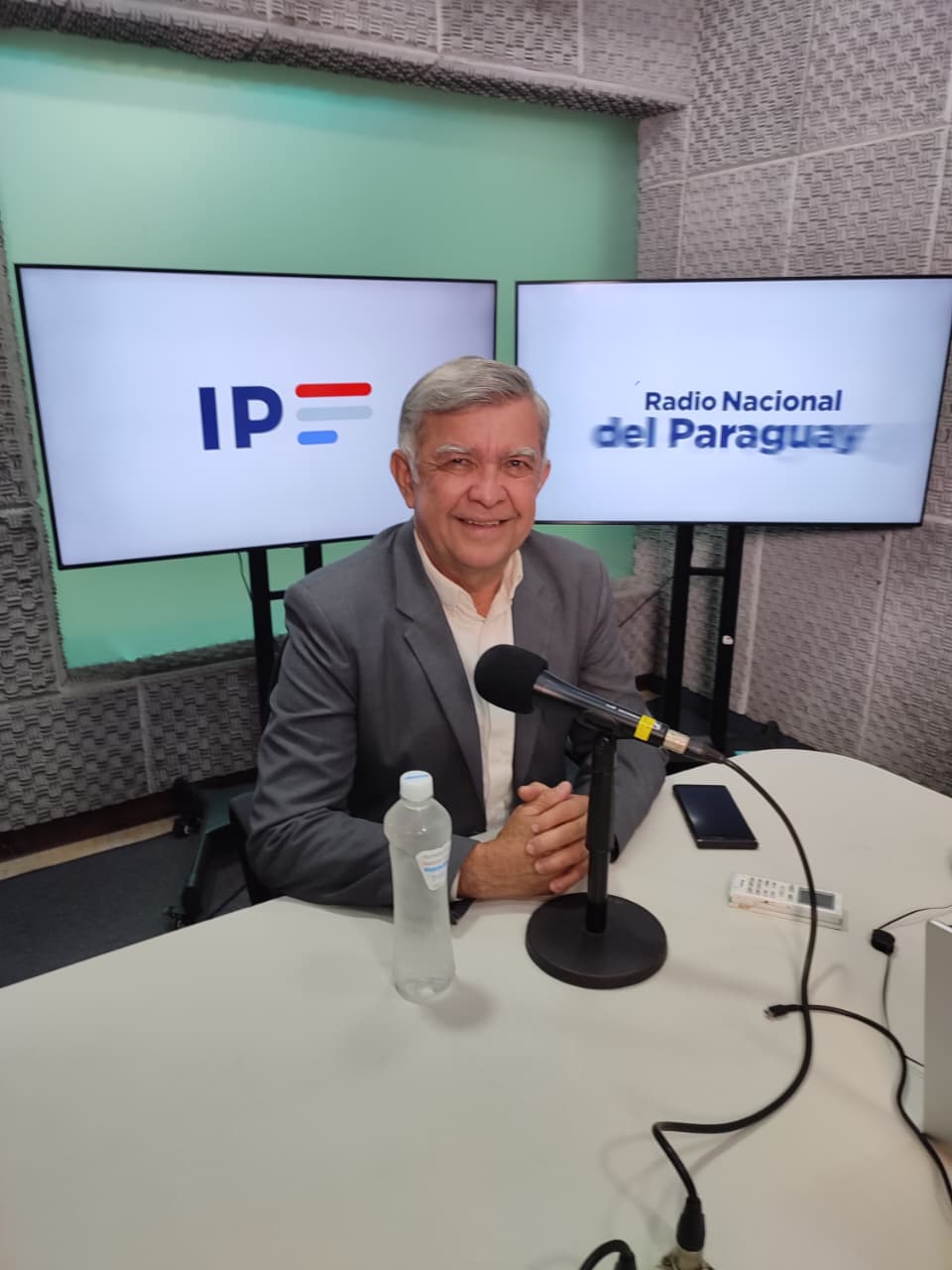 Durante su visita a los estudios de Radio Nacional del Paraguay, el ministro de la Secretaría de Emergencia Nacional, Arsenio Zárate, felicitó por sus 83 años de vida institucional.