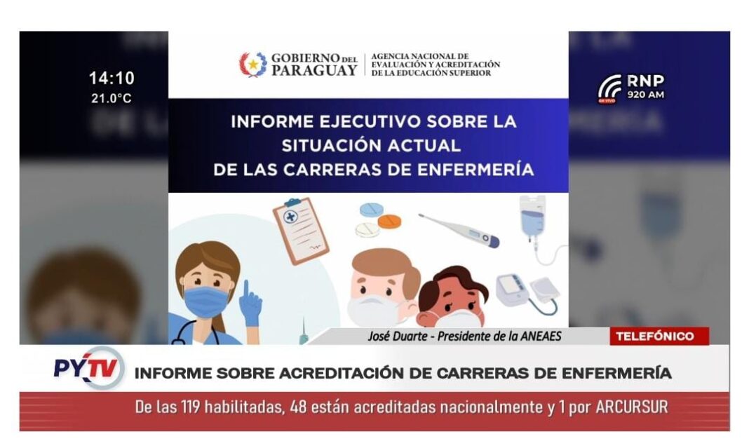 La Agencia Nacional de Evaluación y Acreditación de la Educación Superior de Paraguay da a conocer la situación actual de las carreras de grado en enfermería en Paraguay con un enfoque en su acreditación, informó este jueves el presidente de la ANEAES, doctor José Fernando Duarte.