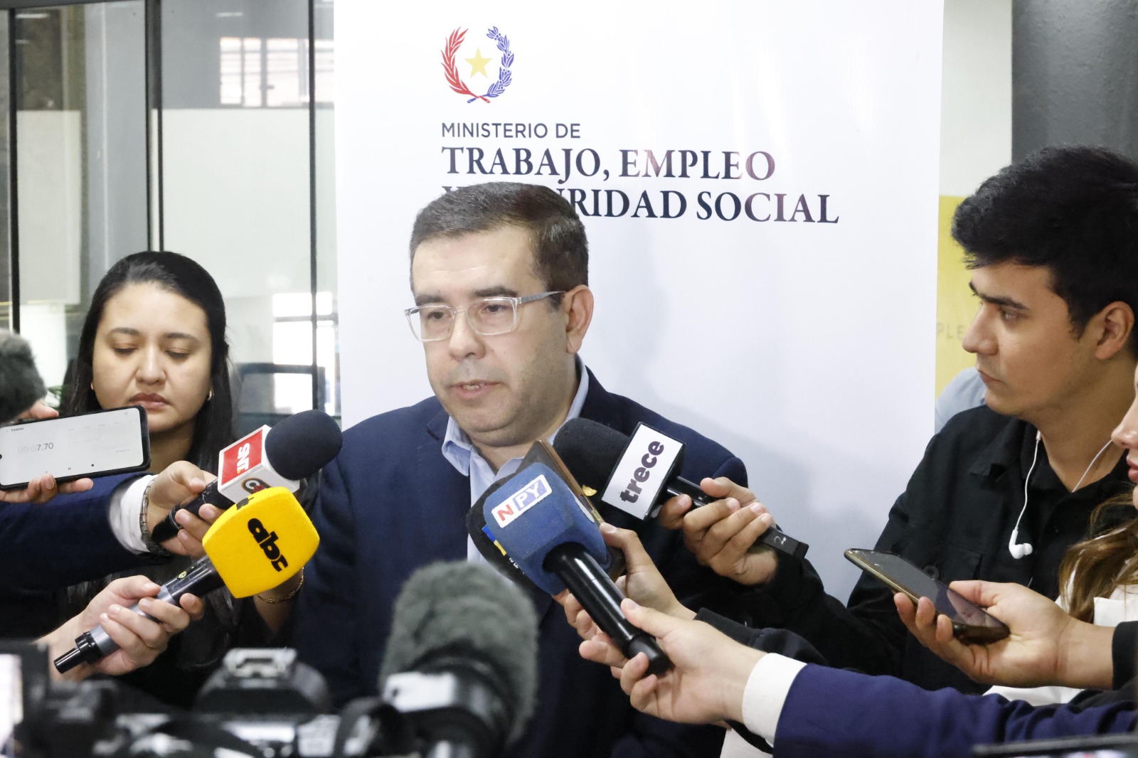 Una reunión con la ministra de Obras Públicas, Claudia Centurión, y representantes de los sindicatos.